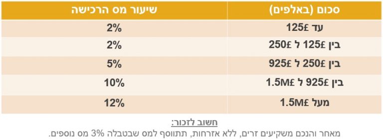 מס הרכישה על דירה באנגליה מחולק על פי מדרגות: