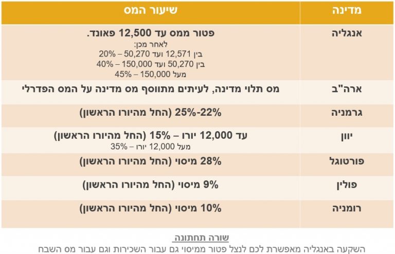 קישור להטבות המס הניתנות למדינות בעלות הסכם מס עם אנגליה (ישראל בניהן)